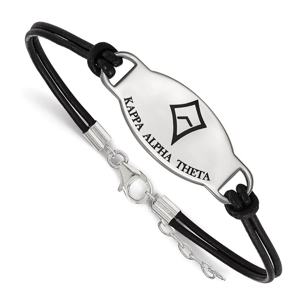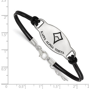 Sterling Silver Kappa Alpha Theta Enamel Blk Leather Bracelet - 7 in.
