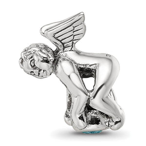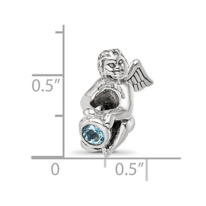 Celebrate the day you were born or that of a loved one with a birthstone charm and attach sentimental meaning to your jewelry. This sterling silver, 3-dimensioal design enhanced by an oxidized finish to increase the definition features an aquamarine cubic zirconia gem for March birthdays. All of our angel charms measures roughly 13 x 17mm with a 4mm core that is interchangeable as well as compatible with Reflections and other popular 3mm width bead style bracelets and necklaces.