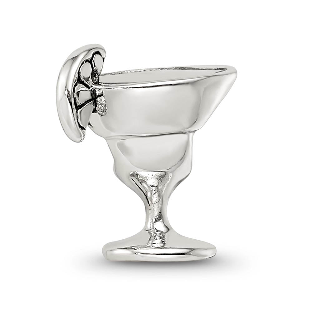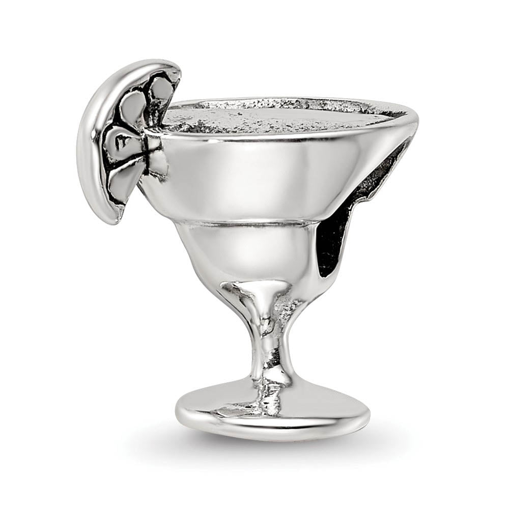 Start conversations wherever you go with a unique charm created to spark interest and reveal your individual style. This three-dimensional margarita glass charm made from polished and antiqued sterling silver is approximately 12mm in width by 13mm in length and has a 4mm core. All of our charms are interchangeable as well as compatible with Reflections and other popular 3mm width bead style bracelets and necklaces. This item is backordered and we estimate it to ship in approx. 10-12 days. Please email service@theblackbow.com for more details.