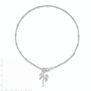 Treat yourself or a loved one to a breezy, tropical palm tree that brings to mind a paradise beach getaway. This 12 x 17mm, sterling silver charm dangles from a 1mm width, 10-inch long snake chain accented with 2mm beads that secures to your ankle with a spring ring clasp. Made in Italy.