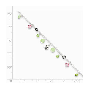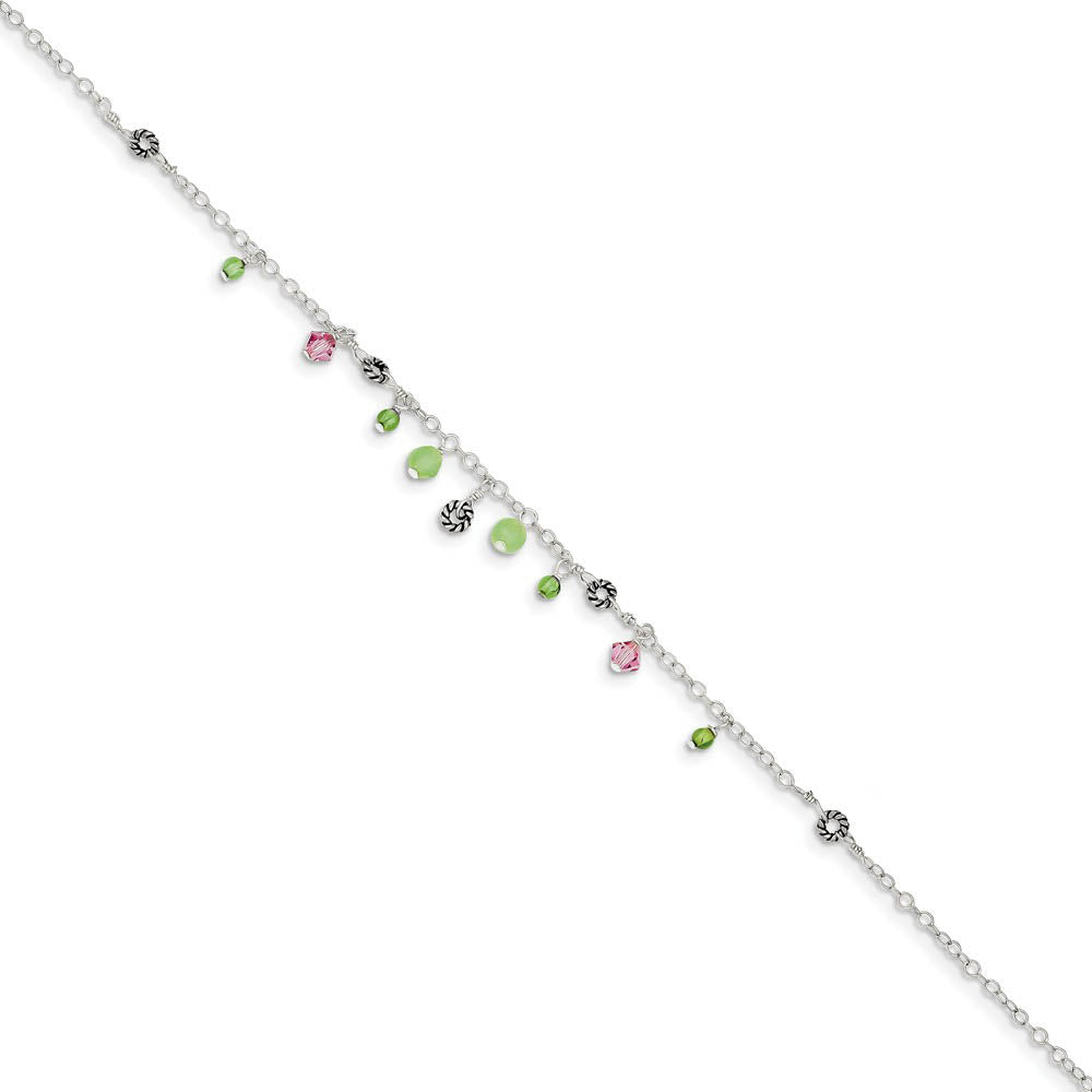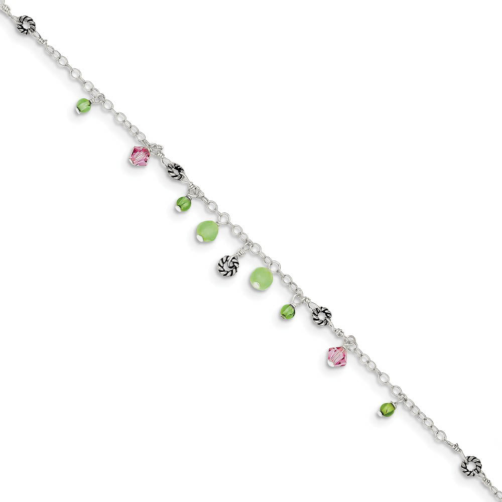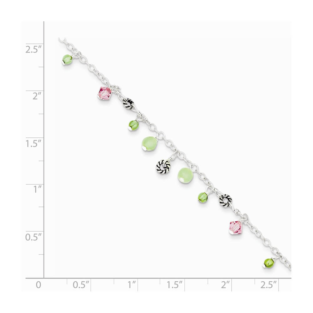 Sterling Silver Pink Crystal, Green Quartz And Peridot Anklet, 9 Inch - Black Bow Jewelry Company