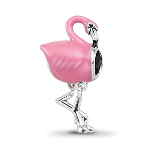 Sterling Silver Pink Enamel Flamingo Dangle Bead Charm