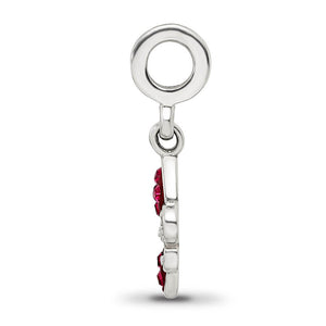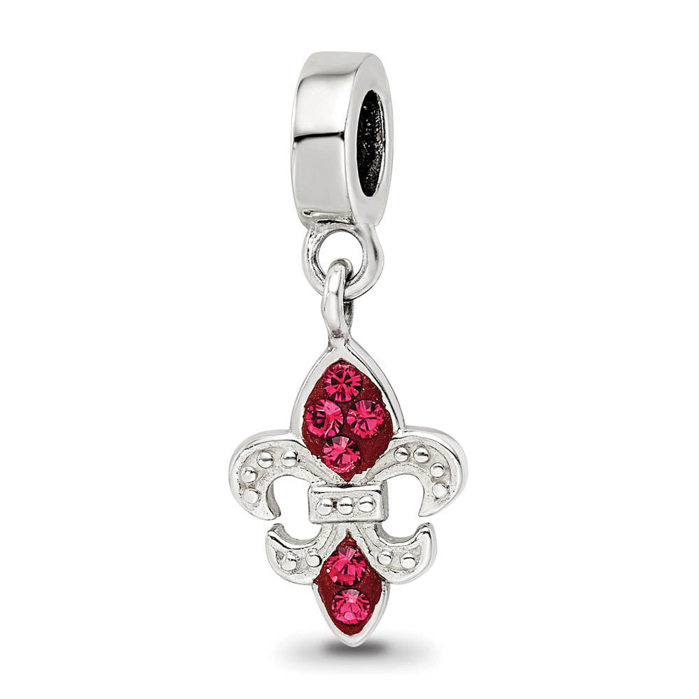 Sterling Silver Red Crystal Fleur De Lis Dangle Bead Charm