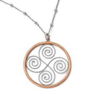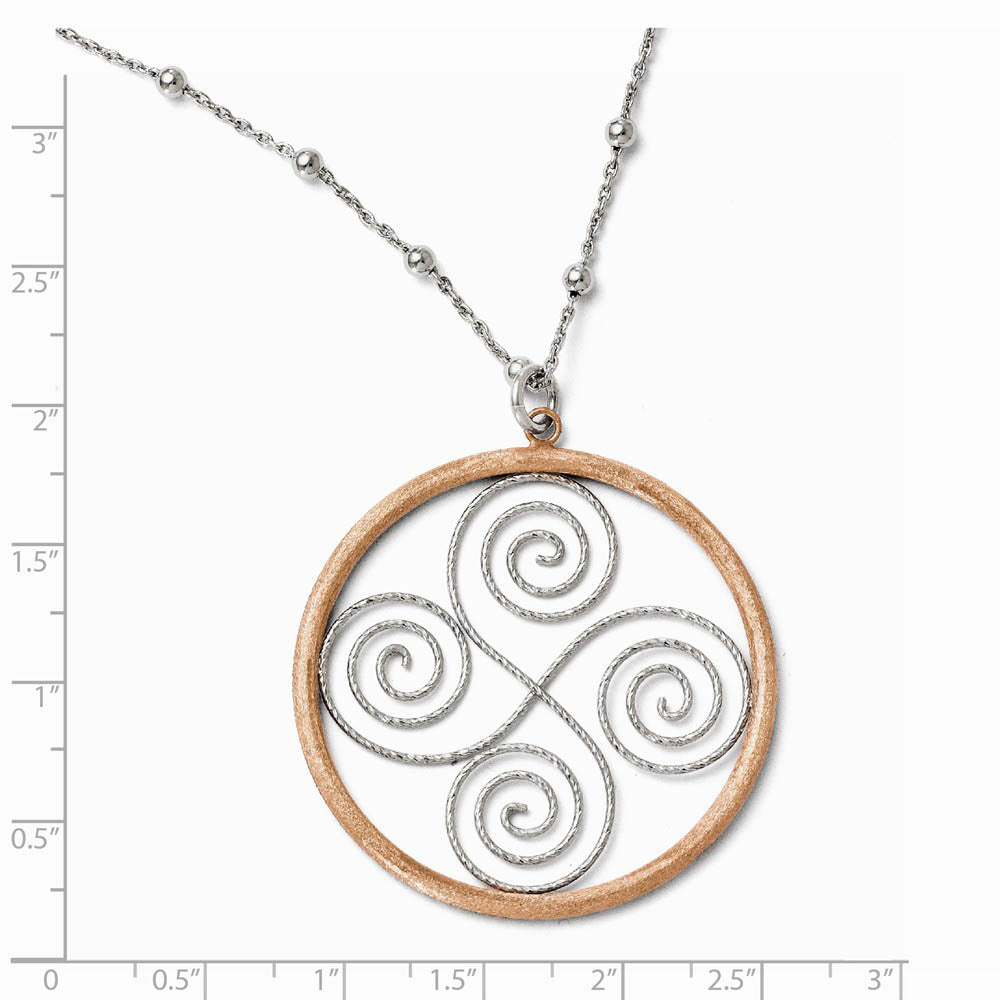 Sterling Silver & Rose Gold Tone Scroll & Circle Necklace, 17-19 Inch - Black Bow Jewelry Company