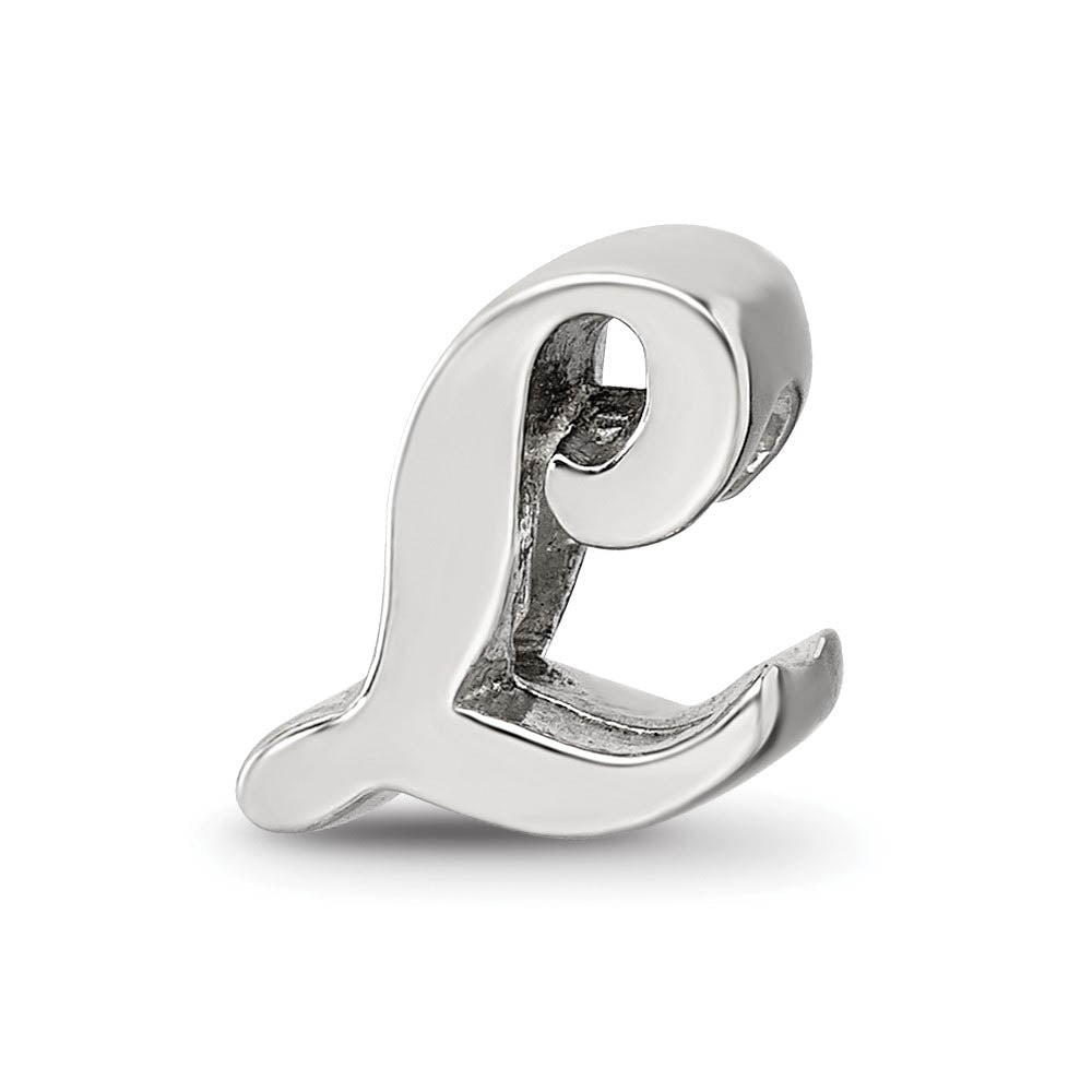Sterling Silver Script Style, Letter L Bead Charm - Black Bow Jewelry Company