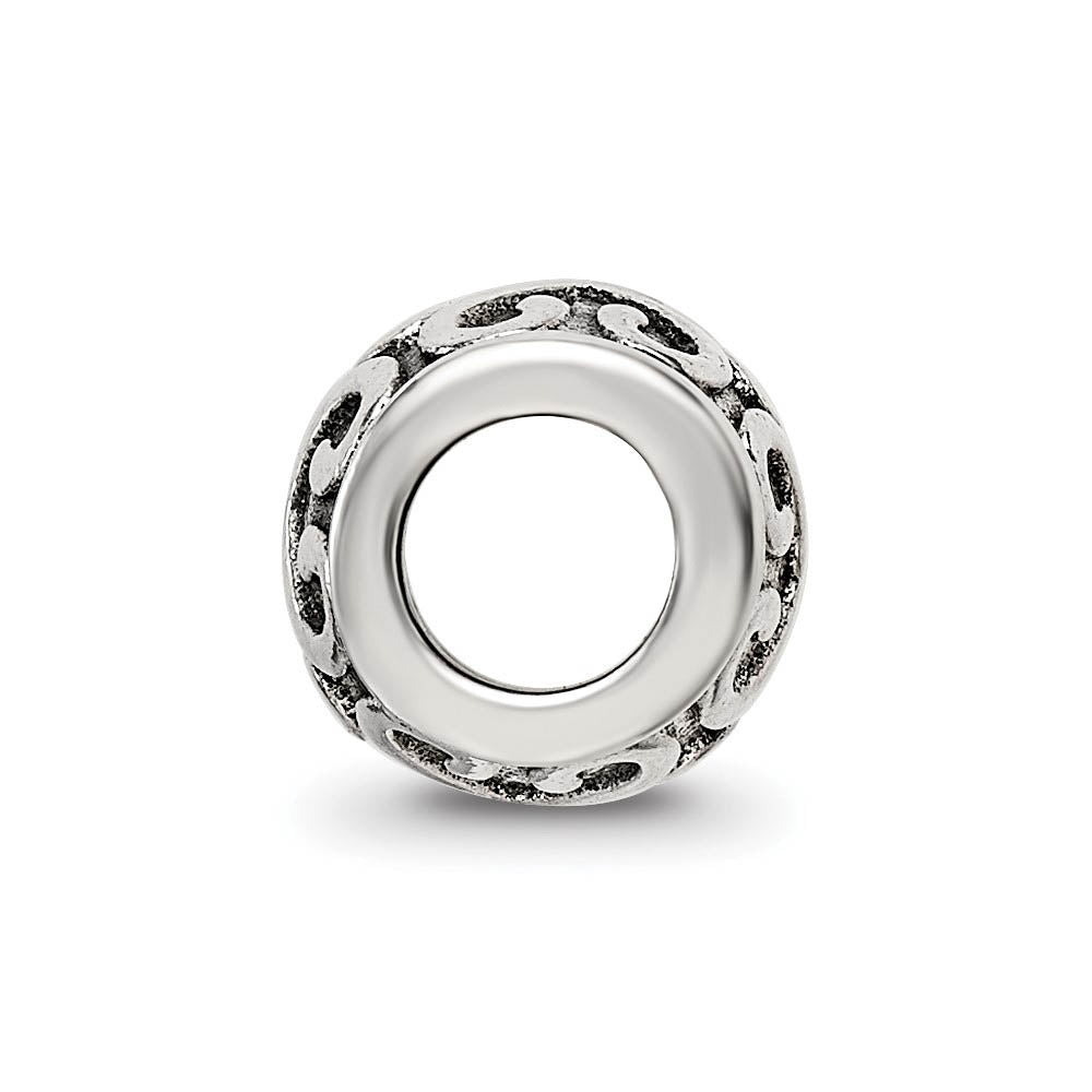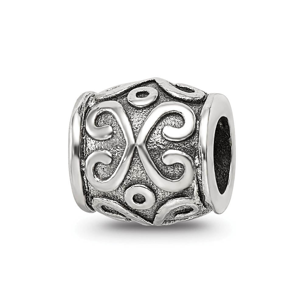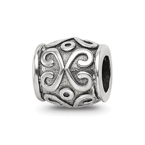 Our Bali charms are handmade in wax then casted from oxidized, sterling silver by skilled artisans with exceptional detail and quality. Measuring approximately 13 x 10mm with a 4mm core, this scroll charm is interchangeable as well as compatible with Reflections and other popular 3mm width bead style bracelets and necklaces.