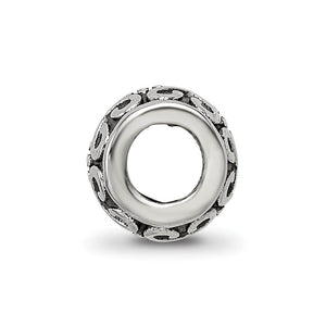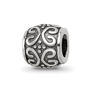 Our Bali charms are handmade in wax then casted from oxidized, sterling silver by skilled artisans with exceptional detail and quality. Measuring approximately 13 x 10mm with a 4mm core, this scroll charm is interchangeable as well as compatible with Reflections and other popular 3mm width bead style bracelets and necklaces.