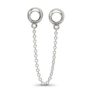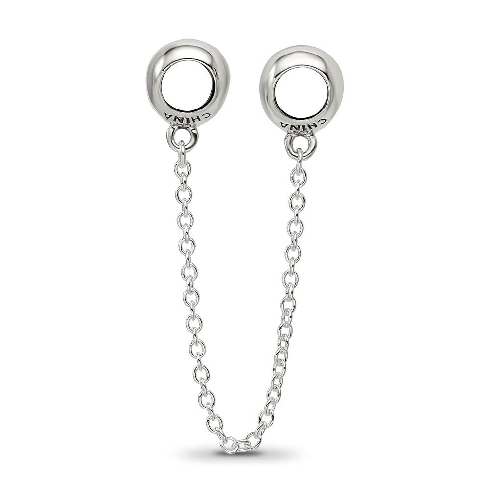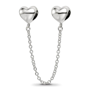 A stylish, 2-inch safety chain used in conjunction with clip or stopper charms, to hold it at the end of your chain or cord, will add extra security to your artisan bracelet. This polished sterling silver, 7mm heart security chain is interchangeable as well as compatible with Reflections and other popular 3mm width bead style bracelets and necklaces.