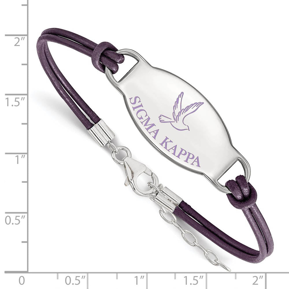 Sterling Silver Sigma Kappa Enamel Purple Leather Bracelet - 7 in. - Black Bow Jewelry Company