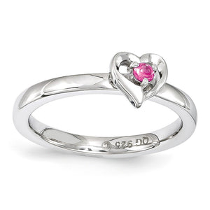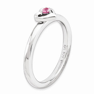 Sterling Silver Stackable Created Pink Sapphire 6mm Heart Ring