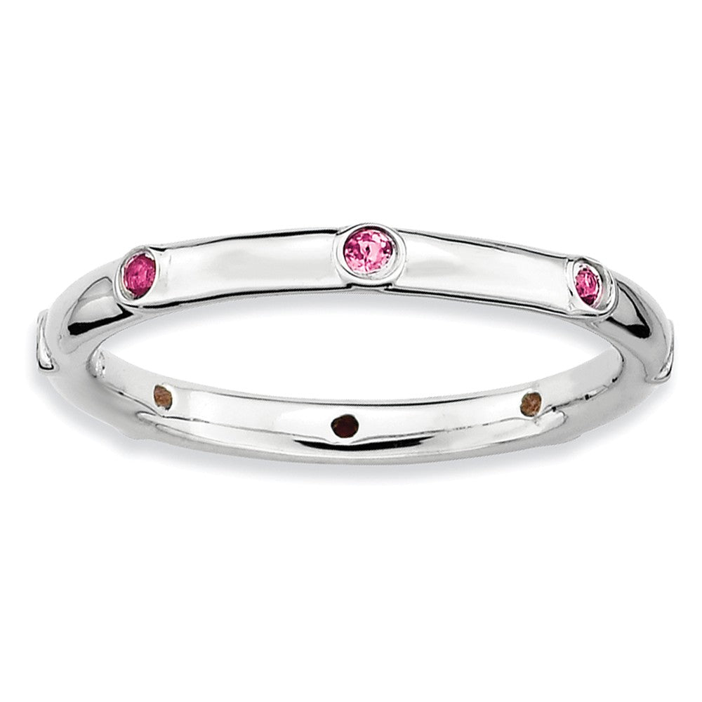 Sterling Silver Stackable Pink Tourmaline Accent 2.25mm Band