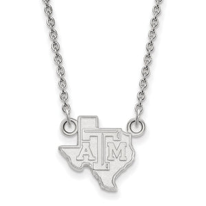 Sterling Silver Texas A&M U Small 'TAM' Texas Necklace - Black Bow Jewelry Company