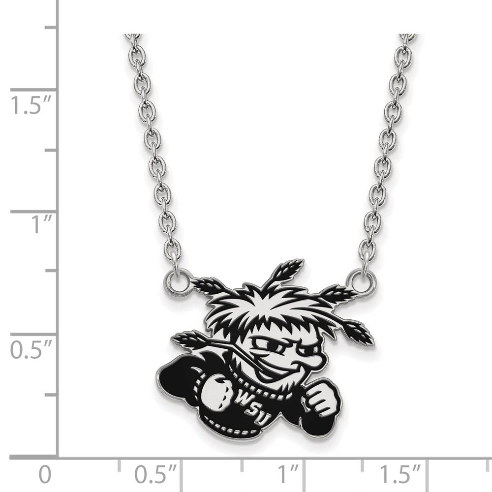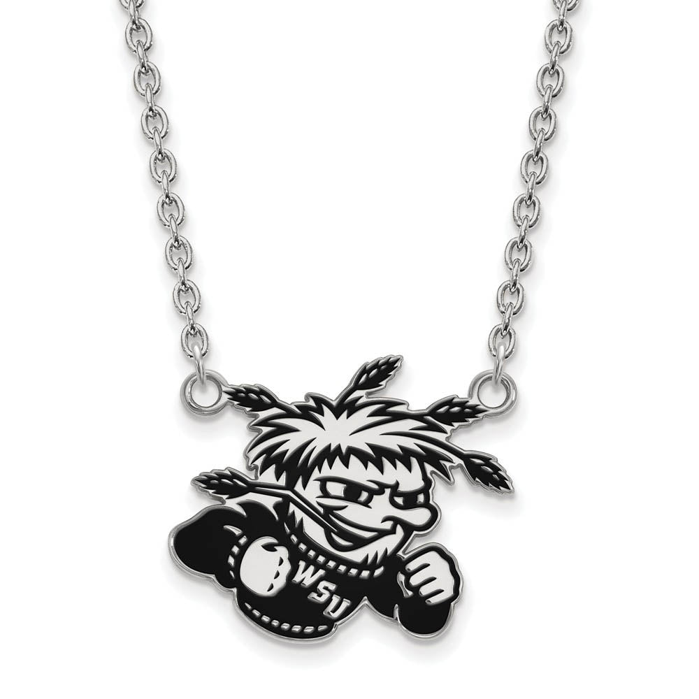 Sterling Silver Wichita State Enamel Large Pendant Necklace - Black Bow Jewelry Company
