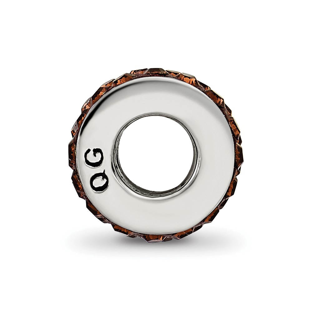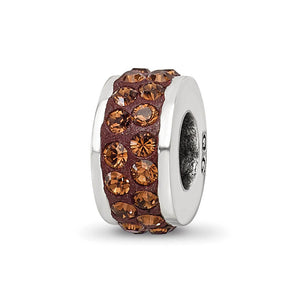 Brighten up your bead collection with a burst of color and uncover your hidden talent for jewelry design. A double row of brown crystals lines our sterling silver charm that measures approximately 5 x 11mm with a 4mm core. It is interchangeable as well as compatible with other popular 3mm width bead style bracelets and necklaces.