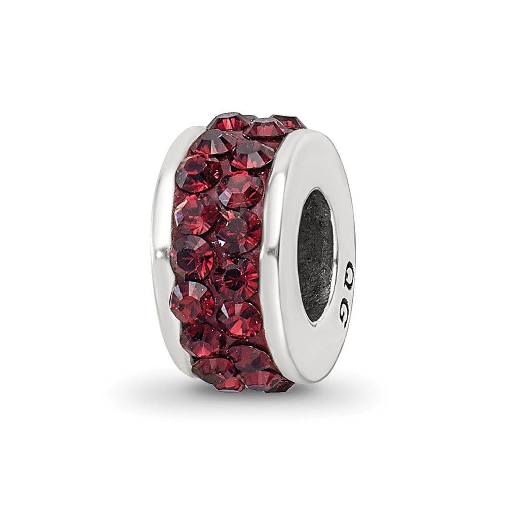 Sterling Silver with Crimson Red Crystals Double Row Bead Charm