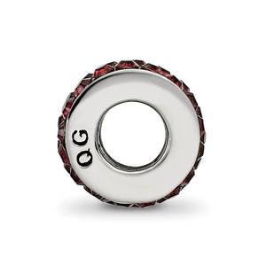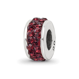 Brighten up your bead collection with a burst of color and uncover your hidden talent for jewelry design. A double row of crimson red crystals lines our sterling silver charm that measures approximately 5 x 11mm with a 4mm core. It is interchangeable as well as compatible with other popular 3mm width bead style bracelets and necklaces.