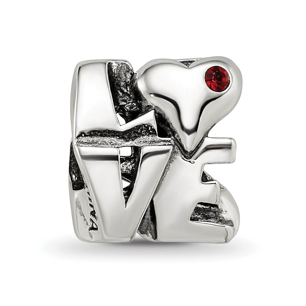 Sterling Silver with Red Crystals LOVE Script Bead Charm - Black Bow Jewelry Company