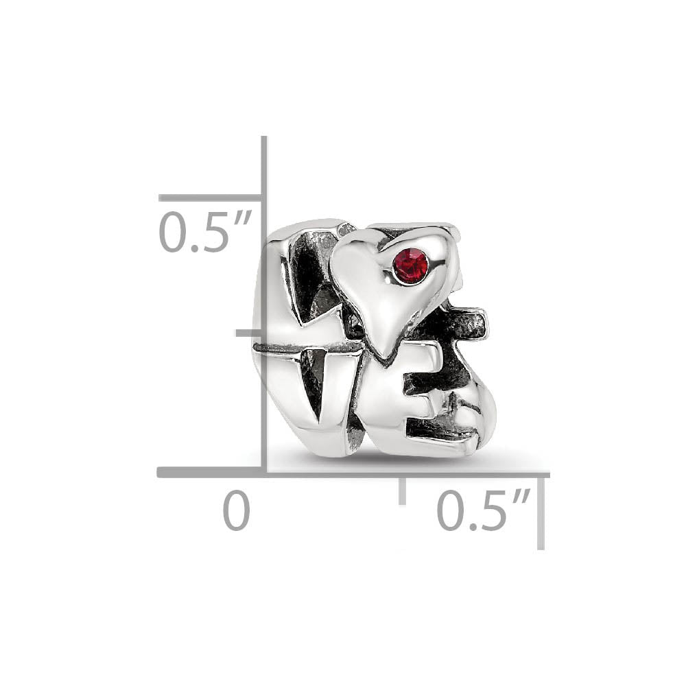 Sterling Silver with Red Crystals LOVE Script Bead Charm