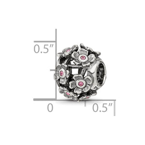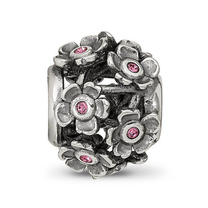 Sterling Silver with Pink Crystals Pink Blossoms Bead Charm