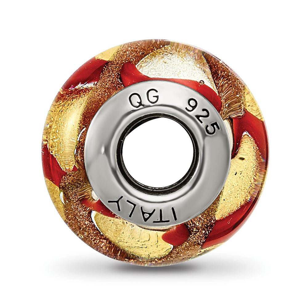Sterling Silver, Yellow and Red Swirl Murano Glass Bead Charm