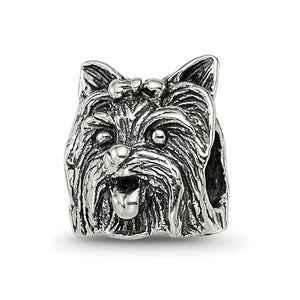 Sterling Silver Yorkshire Terrier Head Bead Charm - Black Bow Jewelry Company