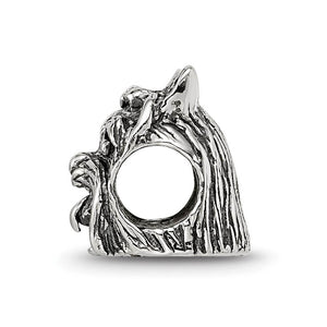 The sculpted image of this miniature Yorkshire terrier, captured in antiqued sterling silver, will win its way into your heart. It measures approximately 11 x 9mm with a 4mm core that is interchangeable as well as compatible with Reflections and other popular 3mm width bead style bracelets and necklaces.