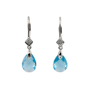 Swiss Blue Topaz & Diamond Lever Back Earrings in 14k White Gold - Black Bow Jewelry Company