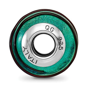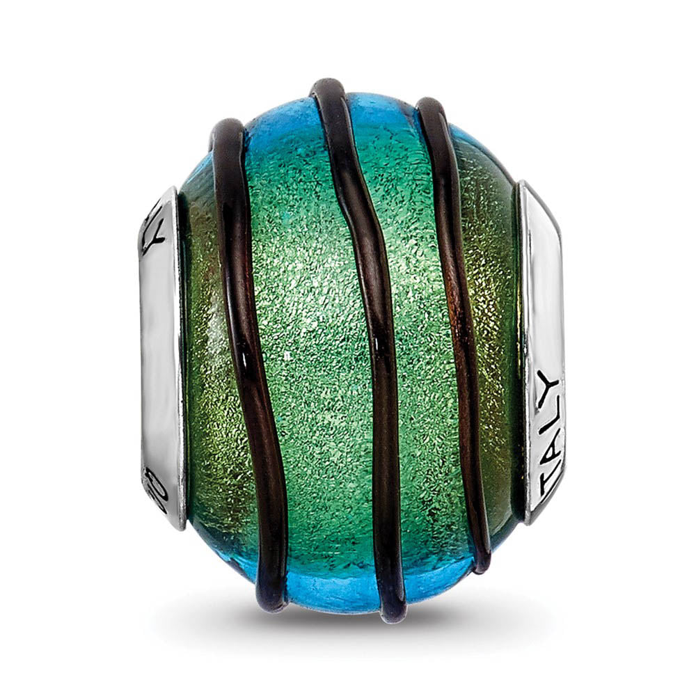 Teal with Black Stripes Murano & Sterling Silver Bead Charm, 15mm