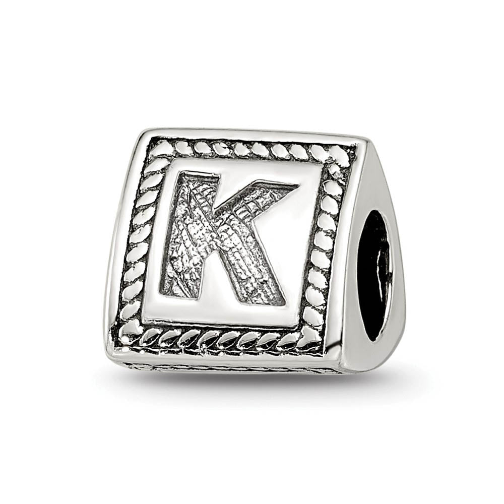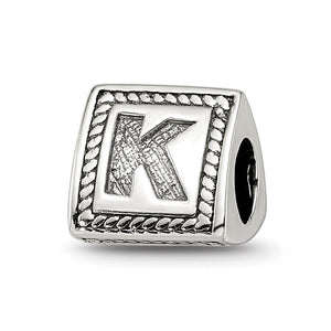 Triangle Block, Letter K Sterling Silver Bead Charm - Black Bow Jewelry Company