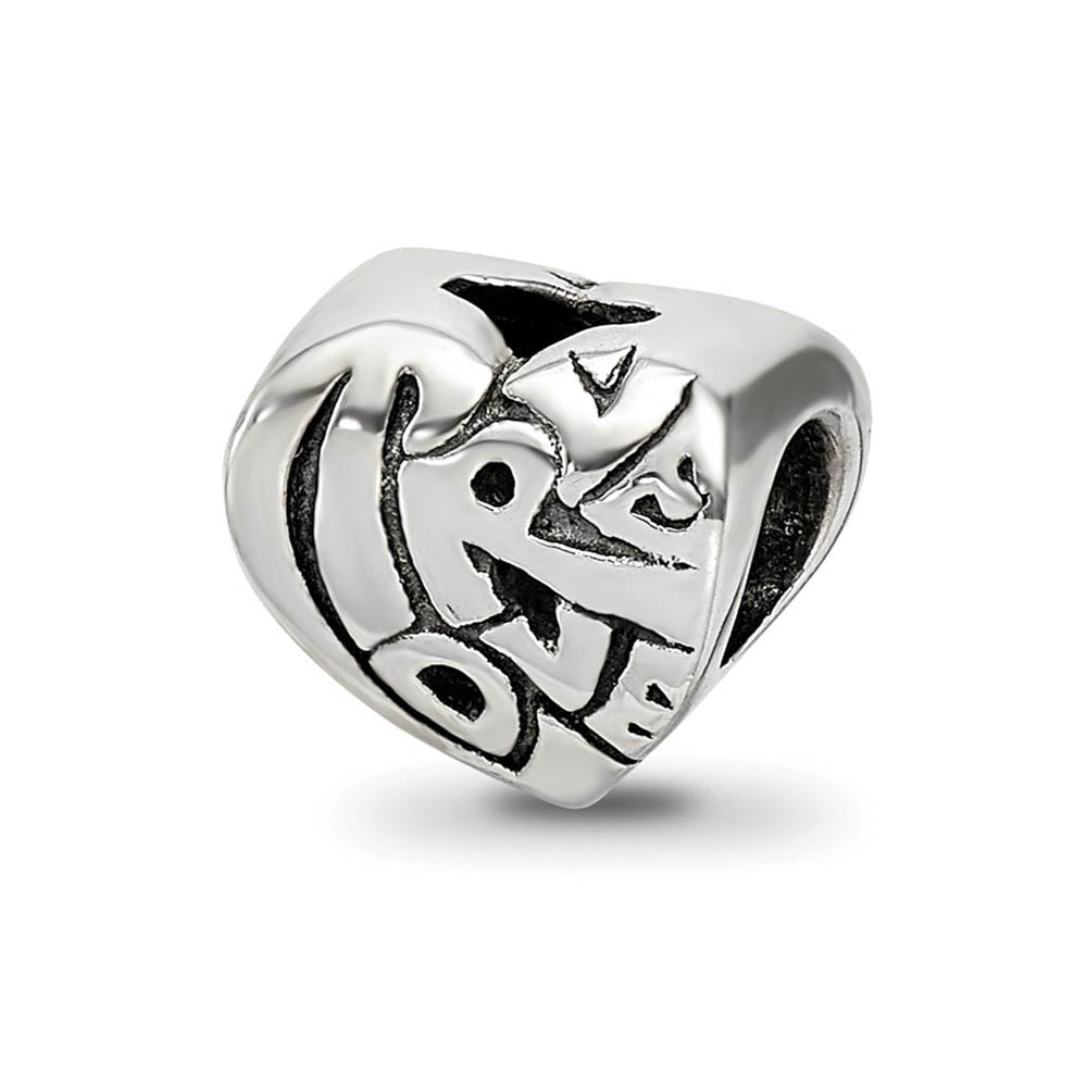 Sterling Silver True Love Heart Bead Charm - Black Bow Jewelry Company
