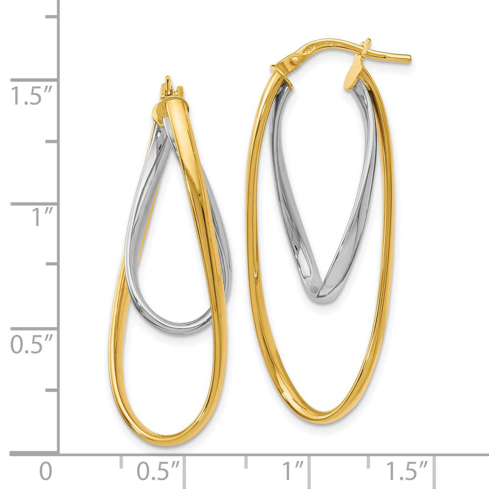 Twisted Double Oval Hollow Hoop Earrings in 14k Two Tone Gold, 42mm