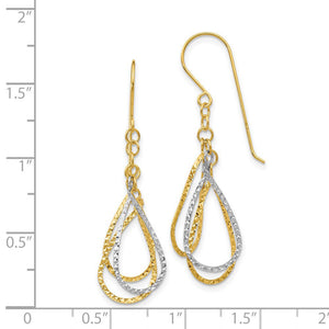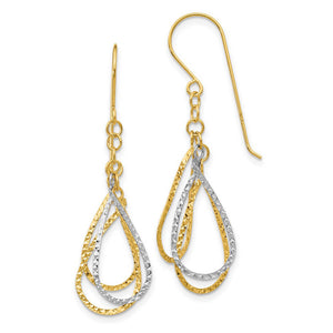 Two Tone Diamond Cut Triple Teardrop Dangle Earrings in 14k Gold