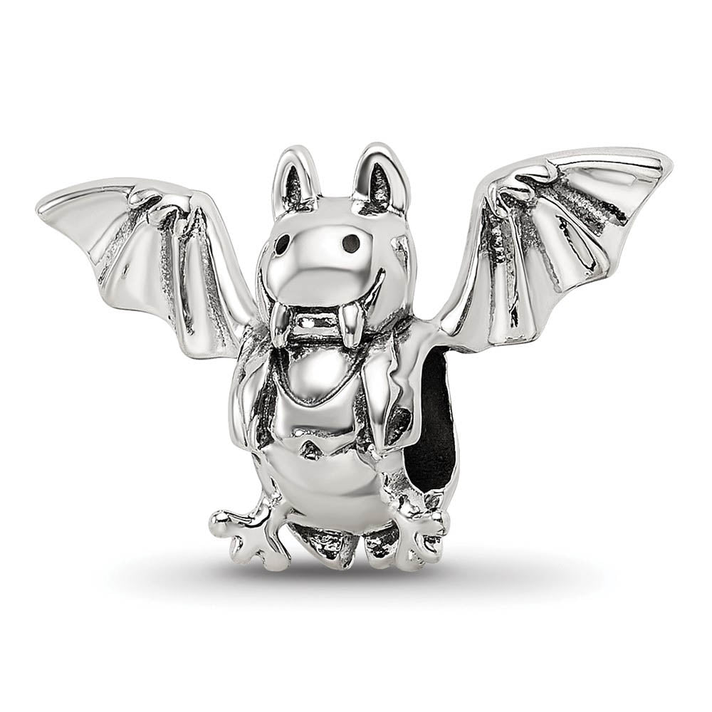 Vampire Bat Bead Charm in Antiqued Sterling Silver - Black Bow Jewelry Company