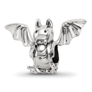 Vampire Bat Bead Charm in Antiqued Sterling Silver