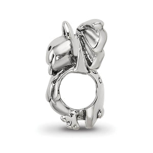 Celebrate the spooky fun of Halloween with this antiqued sterling silver bat charm featuring a caped vampire design. It is approximately 19mm in width by 12mm in length and has a 4mm core that is interchangeable as well as compatible with Reflections, Kera, and other popular 3mm bead style bracelets and necklaces.