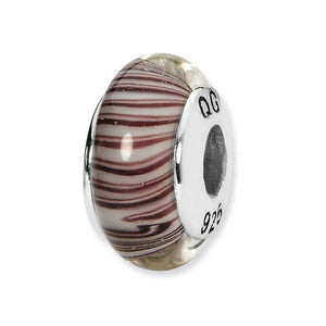 White/Mauve Hand-Blown Glass & Sterling Silver Bead Charm, 13mm