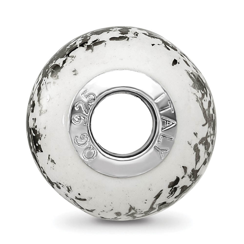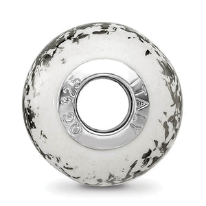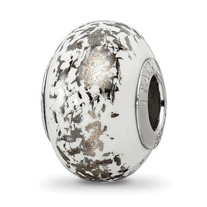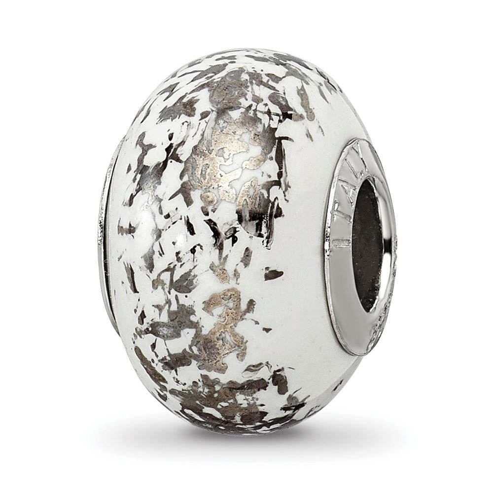 White w/Platinum Foil Ceramic & Sterling Silver Bead Charm, 14mm
