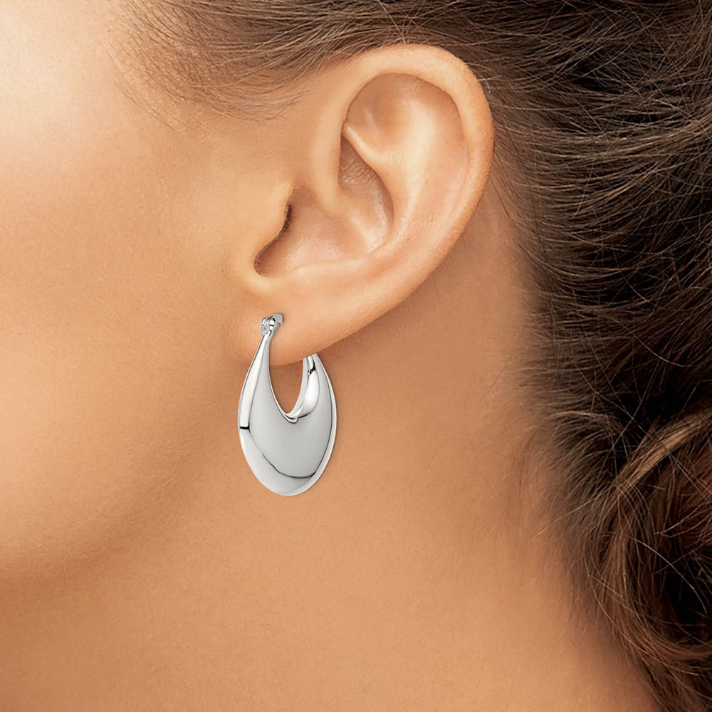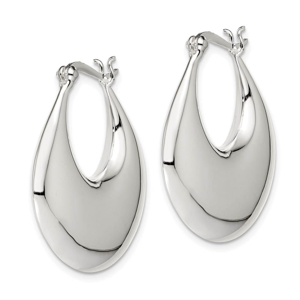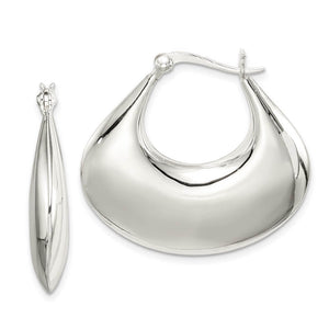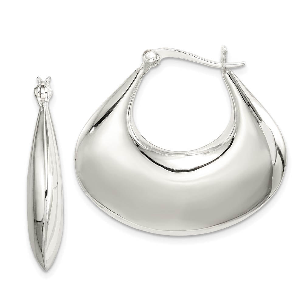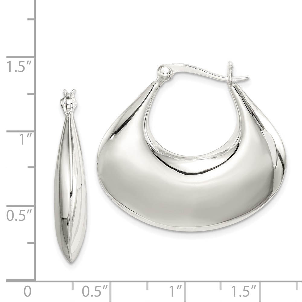 Dress up your ears with these large puffed hoop earrings and seize the day! Fashioned from .925 sterling silver with a bright polished finish they measure 30mm (1-1/8 inches) long by 33mm (1-1/4 inches) wide. This item is backordered and we estimate it to ship in approx. 10-12 days. Please email service@theblackbow.com for more details.