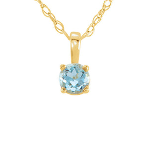 Youth 3mm Round Aquamarine Necklace in 14k Yellow Gold, 14 Inch - Black Bow Jewelry Company